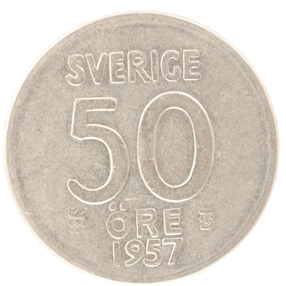 50 Ore Sweden 1957 Silver Coin KM# 825