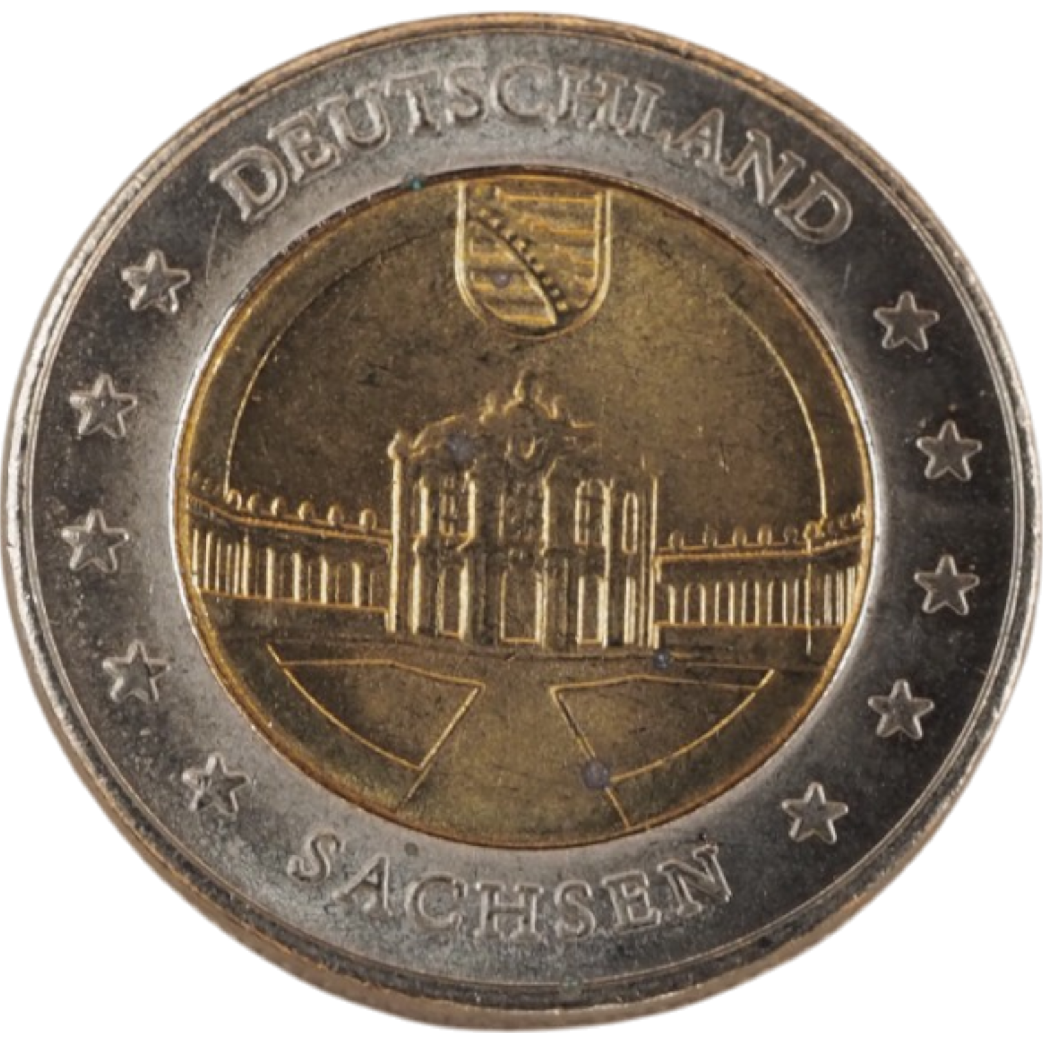 Design: Features the Saxony State's iconic landmark, the Pillnitz Castle, located in the Saxony region. The reverse also includes a depiction of the state’s coat of arms.