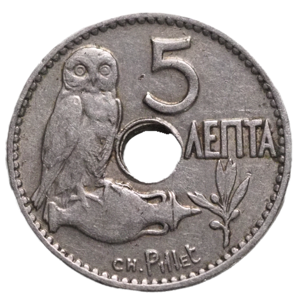 5 Lepta. Greece 1912- ExcellentbVintage Coin KM# 62
