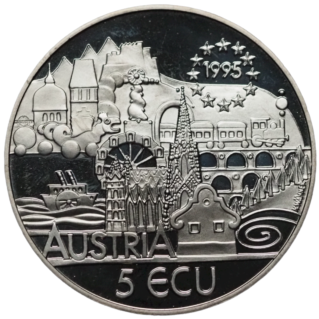 Austria 5 Ecu 1995 Johann Strauss ( 1825- 1899 ) Proof