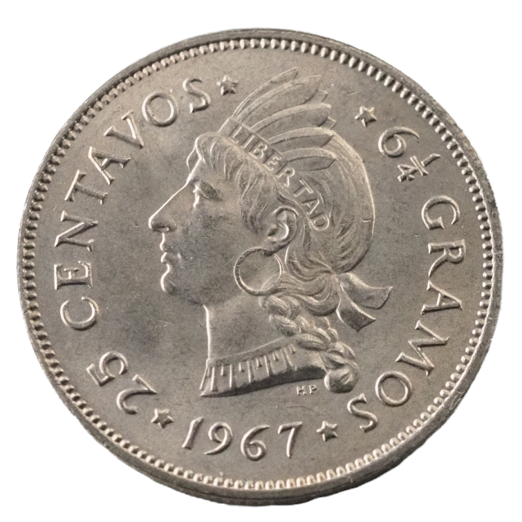 Dominican Republic, 1967 25 Centavos 6 1/4 Gramos Coin KM# 20A