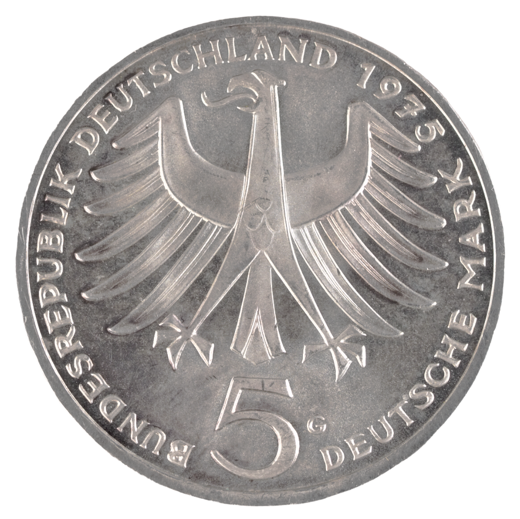 Germany- Albert Schweitzer 1975G Silver 5 Mark Coin KM# 143