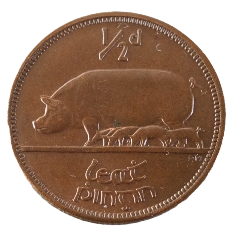 Ireland, Half Penny 1942 Coin, Old Irish 1/2d 80 th Birthday Gift Pig Piglets WWII UNC