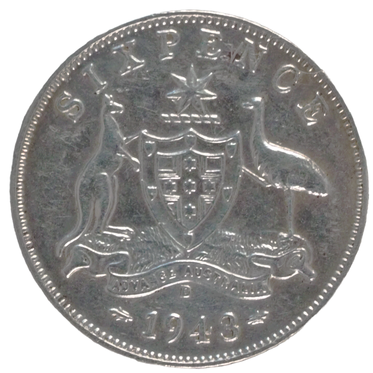 Embrace the allure of Australian numismatics with our sought-after 1943-D Silver Sixpence Coin. Crafted in silver, this coin showcases meticulous detailing on the obverse and features a distinguished design on the reverse. From the year 1943, this coin is a rare gem that encapsulates a moment in Australia's history. With its scarcity and historical significance, this coin stands as a prized addition to any collection. Own a piece of Australian heritage and elevate your numismatic journey with this exquisite and sought-after treasure.